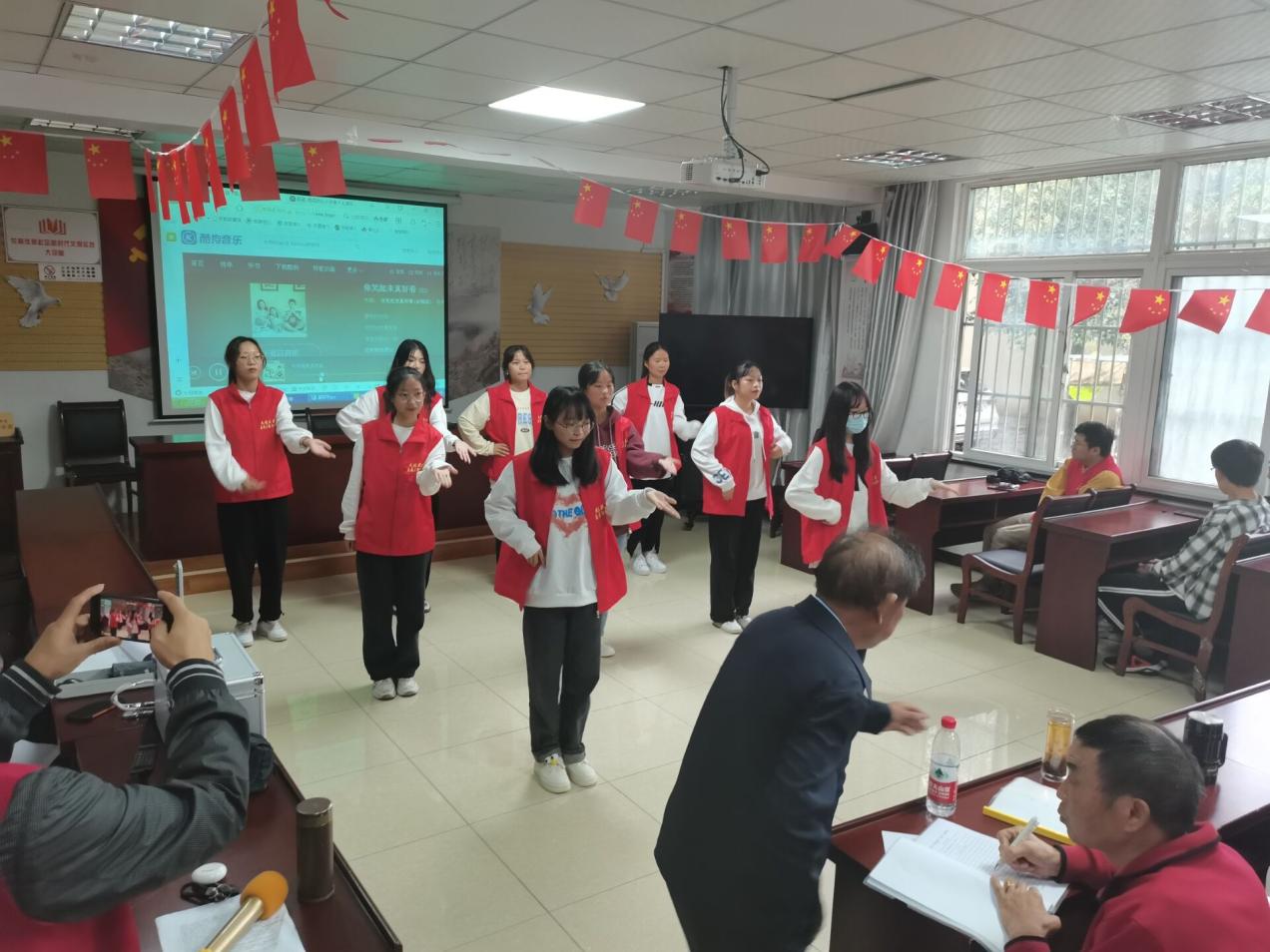 活动开始时,志愿者们向老人们介绍了重阳节的节日起源和饮食习惯,老人们从中 了解到了日常生活上的一些错误的地方。之后,志愿者们从饮食、穿衣、运动等方面向老人们介绍了日常生活需要注意的地方。介绍完这些之后进行了演唱歌曲“酒醉的蝴蝶”等一些文艺汇演。最后在专业的医护人员的指导下,志愿者给每一个老人测量了血压。