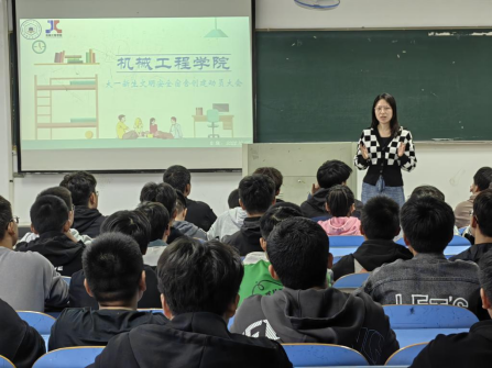 学生代表机工222班班长于世杰表示,一定会认真开展宿舍清洁工作,不使用违章电器,围绕安全文明宿舍创建的目标,以自身的规范言行带动身边、班级的同学,帮助同学们改掉不良的生活习惯,成为积极向上、健康文明的新时代大学生。