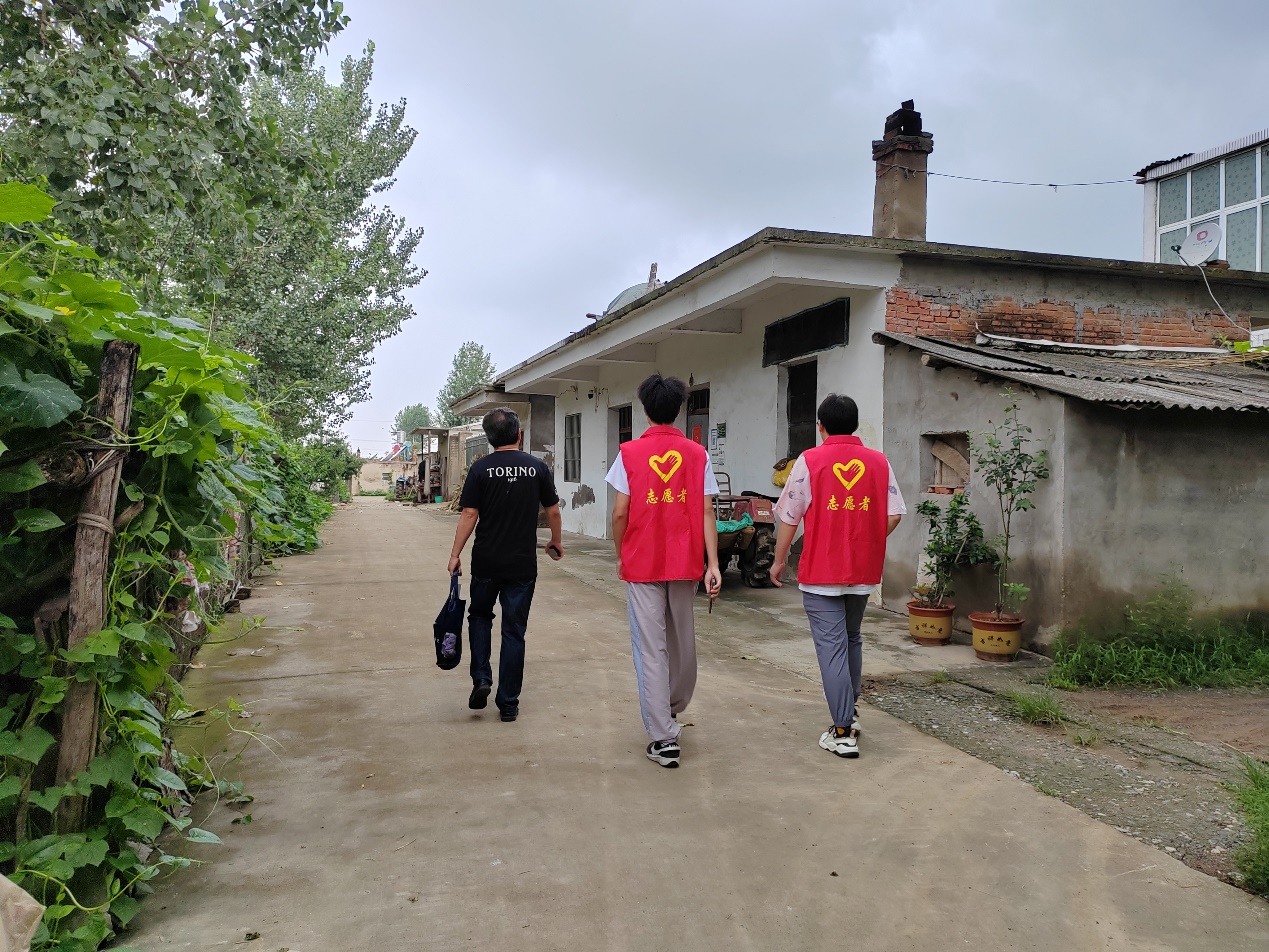 图为实践队员和村委一同走访当地村民家中了解情况