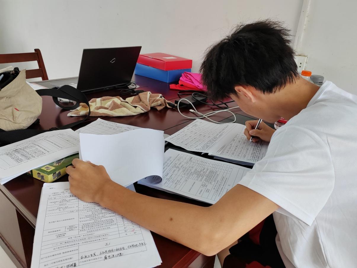 图为实践队员帮助村书记完成扶贫工作记录表