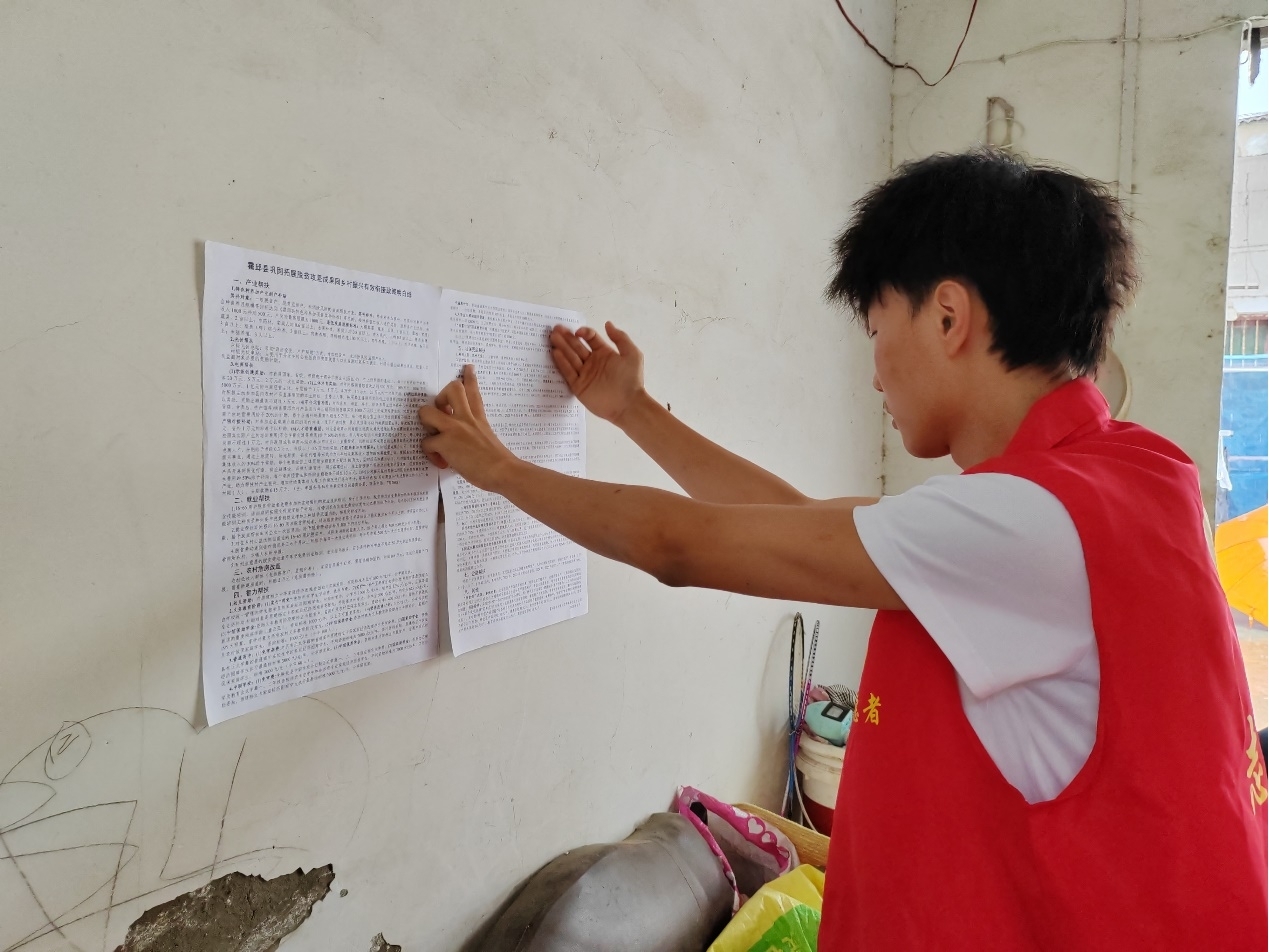 图为实践队员粘贴有关乡村振兴政策的通知