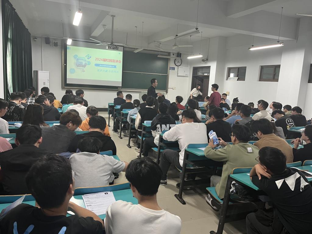 宣讲会伊始,李云龙校友回顾了自己在母校学习生活的快乐时光,随后通过宣传册、宣讲PPT演示、面对面交流等方式向参会的同学们介绍了企业的目标定位、业务范围、人才培养发展模式、核心技术和生产效益,宣讲会结束后,企业工作人员现场组织面试。