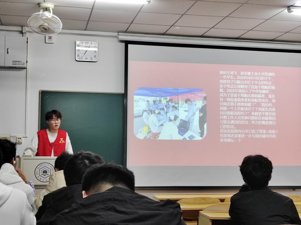 3月24日晚,90分钟足球 “学雷锋”专题理论宣讲团成员、造血干细胞捐献者王鸿飞同学和宝钢奖学金获得者王博同学,分别在佳山校区教一615教室、教三南201教室,开展“雷锋精神代代相传”理论宣讲活动和“学雷锋”科普宣传志愿服务,2023级本科生参加。