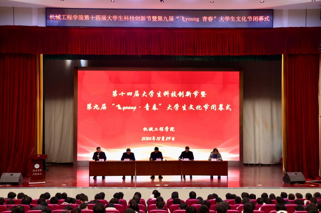 第十四届大学生科技创新节暨第九届“飞young·青春”大学生文化节闭幕式在秀山校区大学生活动中心隆重举行,院党委书记吴文兵、院长刘庆运、院党委副书记、副院长陈庆林、副院长饶思贤出席开幕式,各系主任、班主任、全体辅导员、各年级学生代表参加闭幕式。