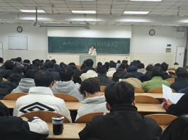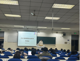 于秀山校区阶教102、103教室召开了2023级诚信考试暨寒假安全教育主题年级会,会议由2023级辅导员彭勇刚、童辉辉主持,2023级全体学生参加。