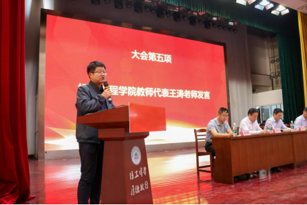 营造浓厚的科创氛围和老师们的辛勤付出和悉心指导表示感谢。教师代表王涛在发言中谈了自己对大学生科技创新的理解和感悟,鼓励同学们要勤于学习、善于思考、勇于实践、敢于创新,为国家的科技进步贡献青春力量。