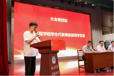 第十届“飞young·青春”大学生文化节活动实施方案》。学生代表周俊辰在发言中分享了自己参加学科竞赛的经历、收获与感受,要积极主动、不畏失败、敢于拼搏、善于合作,并对90分钟足球