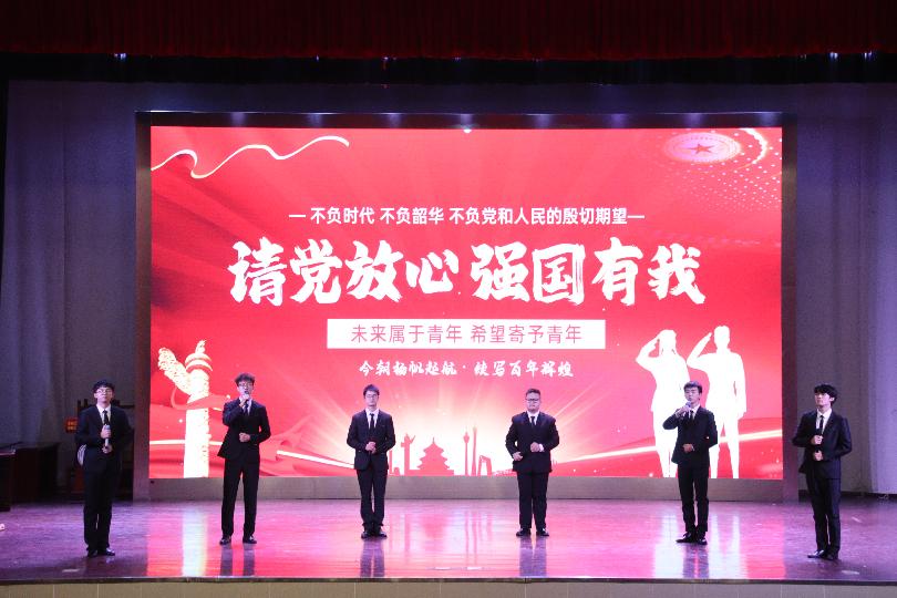 参赛队伍最后一个出场,选手们或激情澎湃、或款款深情,以饱满的热情、起伏的声调、沉稳的舞台展现力圆满完成节目《青春颂党恩,筑梦新征程》,赢得了评委和观众的阵阵掌声。