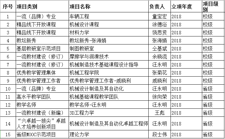 2018年质量工程项目