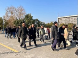 教职工精神抖擞、昂首阔步,沿着既定的路线,以饱满的激情、昂扬的斗志投入到健步行活动中。