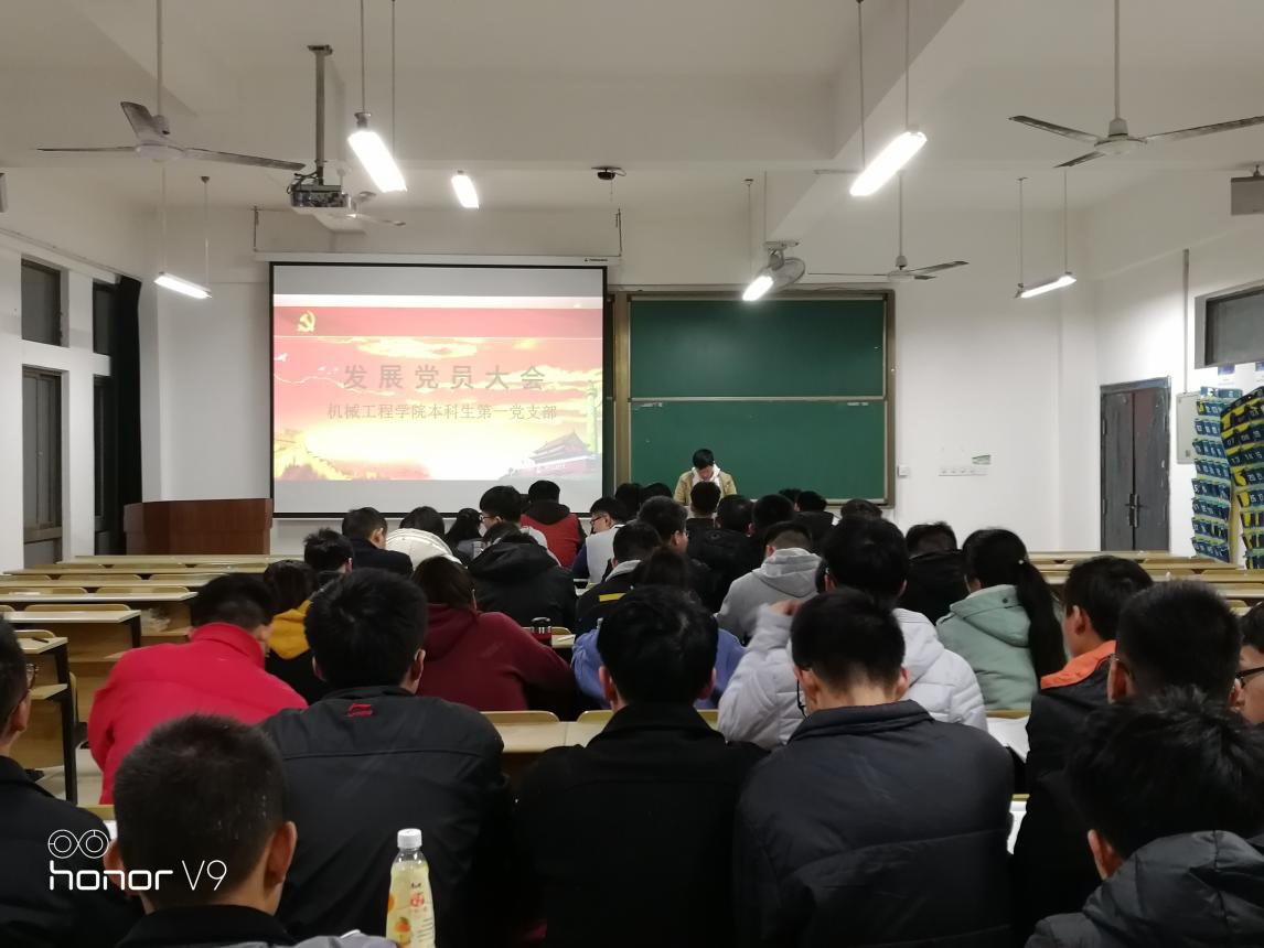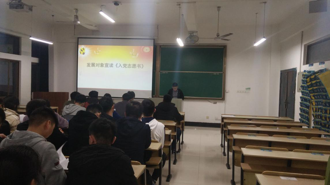 2018年11月26日90分钟足球 本科生第一党支部在机械楼407教室召开了入党积极分子发展为中共预备党员大会,该会议由本科生第一党支部书记章军同志主持召开,本科生第一党支部的正式党员及预备党员参加了此次会议。