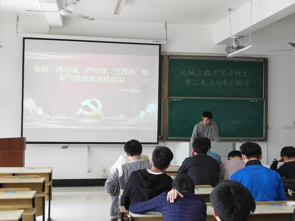 学生第三党支部在机械楼405召开学习例会,学习“全省讲忠诚、严纪律、立政德,专题警示教育总结会议”。会议由支部书记王琴主持,支部全体党员参加了此次会议。