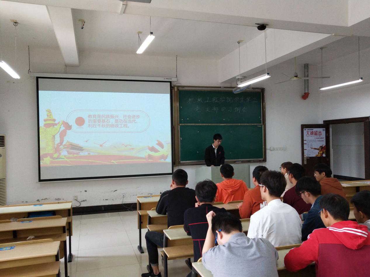 本科生第三党支部在机械楼405召开关于“学习习近平总书记全国教育大会重要讲话”的学习例会。会议由支部书记王琴老师主持,全体党员参加了此次会议。