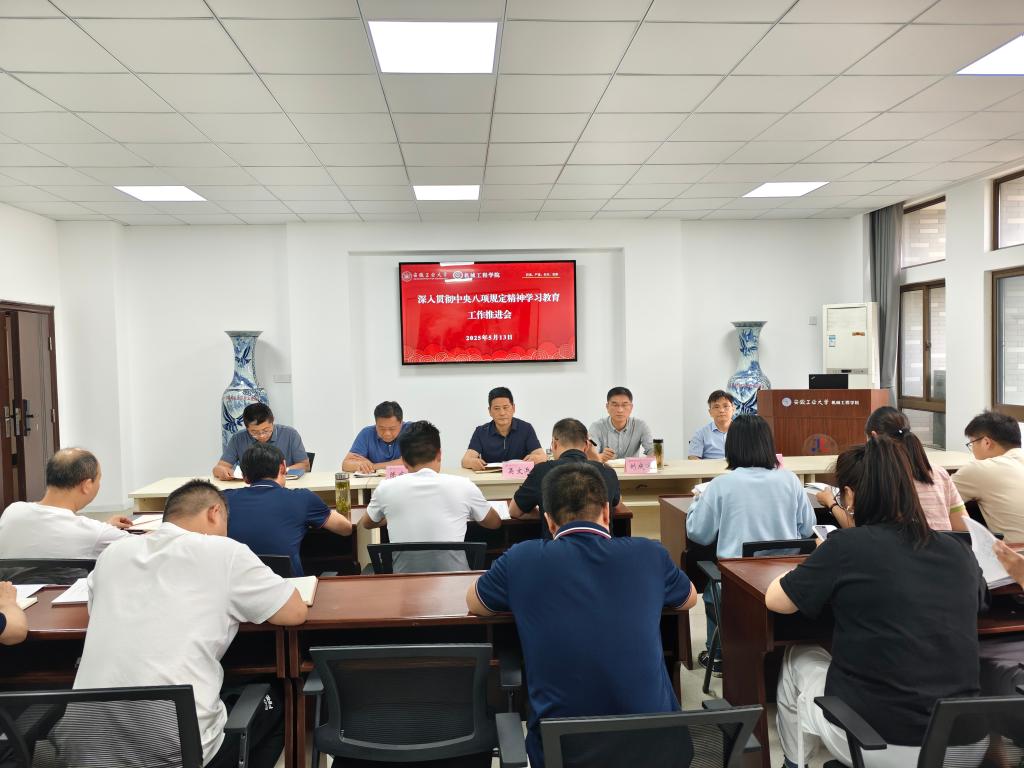 在机械楼404会议室召开深入贯彻中央八项规定精神学习教育工作推进会。院领导班子成员、党委委员、党支部书记参加会议,会议由院党委副书记、纪委书记、副院长陈庆林主持。