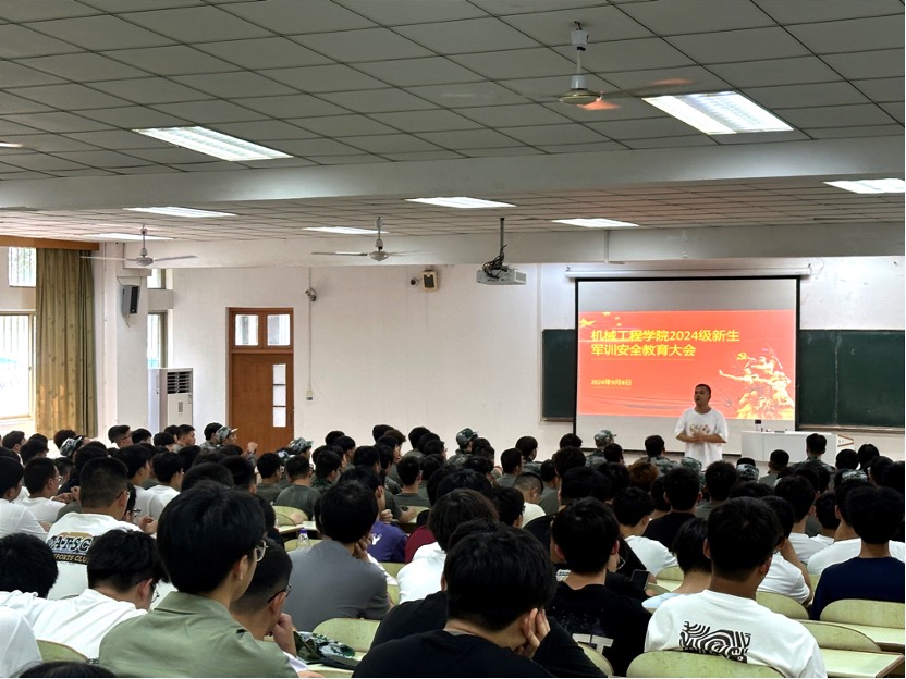 在教三南103教室召开2024级新生军训动员暨安全教育大会。