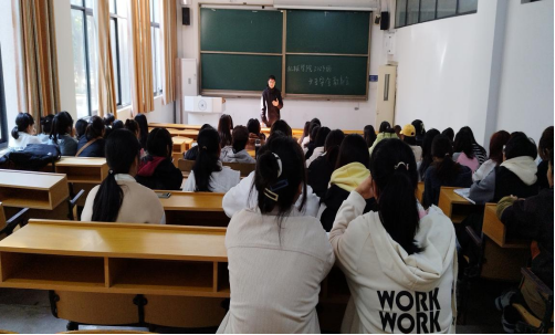 辅导员张敏老师基于工作经历,结合相关案例,叮嘱女生要遵守校规校纪,不要夜不归宿。同时,提醒要注意保护好自己的人身财产安全,学会正确看待、处理感情问题,遇到问题要及时与老师、家长进行沟通,寻求帮助和支持。张老师还向同学们分享了自己的学习经验,要认真听讲、积极思考,做好课堂笔记,不断提高学习水平。