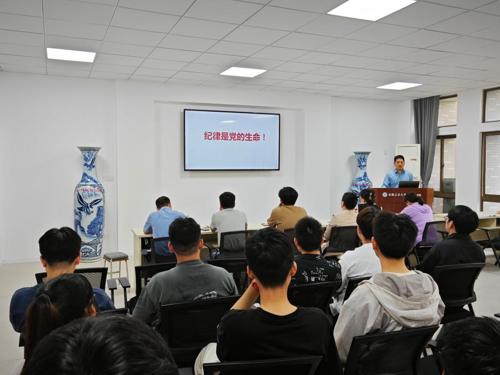 党委书记吴文兵在机械楼404会议室讲《中国共产党纪律处分条例》党课,机关实践党支部11名教师党员和本科生第三党支部20名学生党员到课学习。