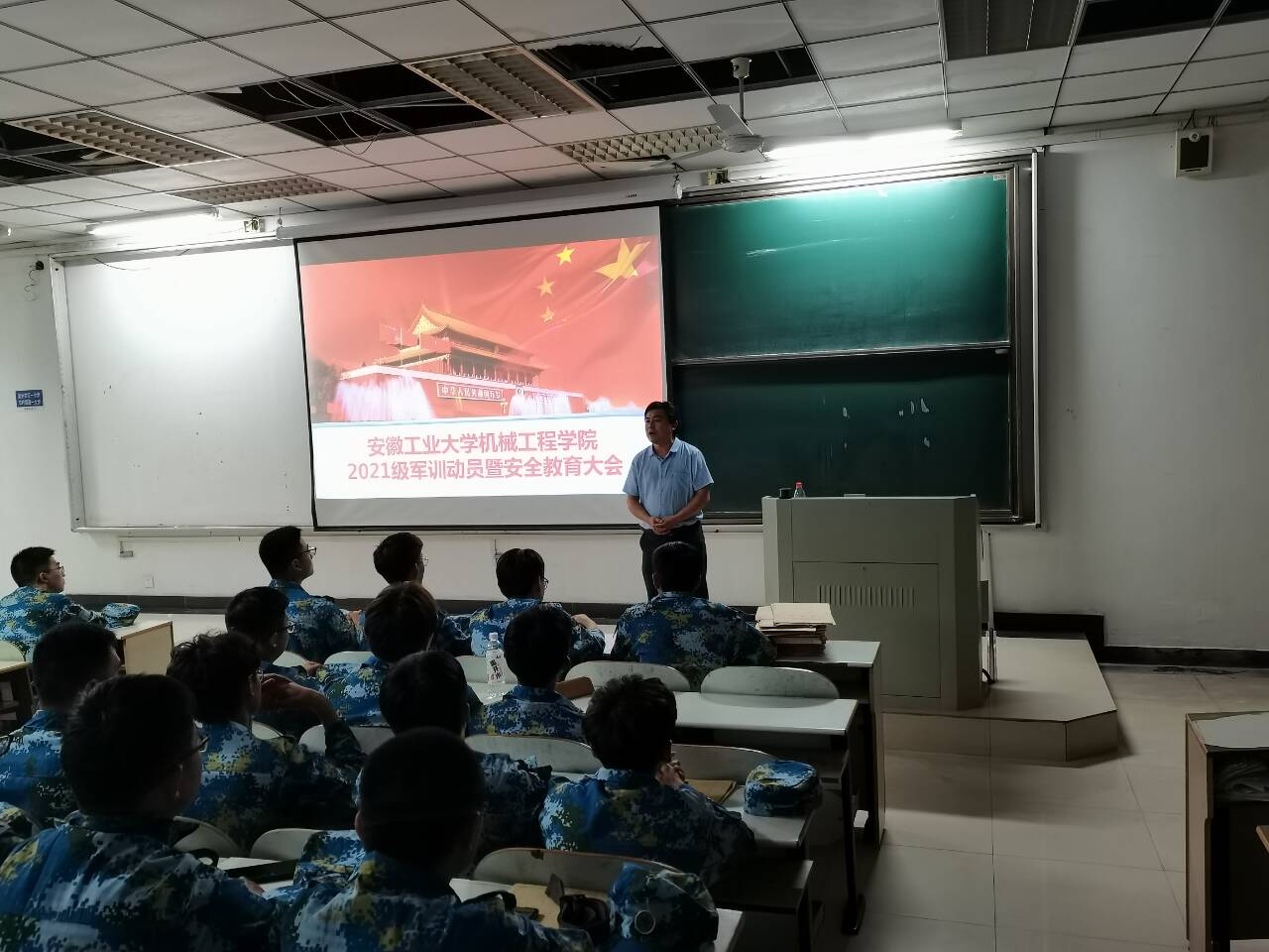 李克明强调,因目前仍然处于疫情防控常态化期间,学校严格实行出入管控,同学们无故不能离开学校,特殊情况要履行请销假手续,路上注意交通安全,遵守交通规则,乘坐正规交通工具。不结交社会闲杂人员,不酗酒、不打架斗殴,以免给自己带来不必要的麻烦。注意饮食安全,不吃不洁食物,预防疾病的发生,养成良好的个人生活习惯。李克明指出,军训会消耗大量能量,军训结束要多吃肉类、蛋类以及水果蔬菜;大汗淋漓后不要急于喝水,稍微休息片刻再补充水分,以免对肠胃突然加重负担造成伤害;还提醒同学们要养成规律的作息习惯,按时作息,保证睡眠充足。