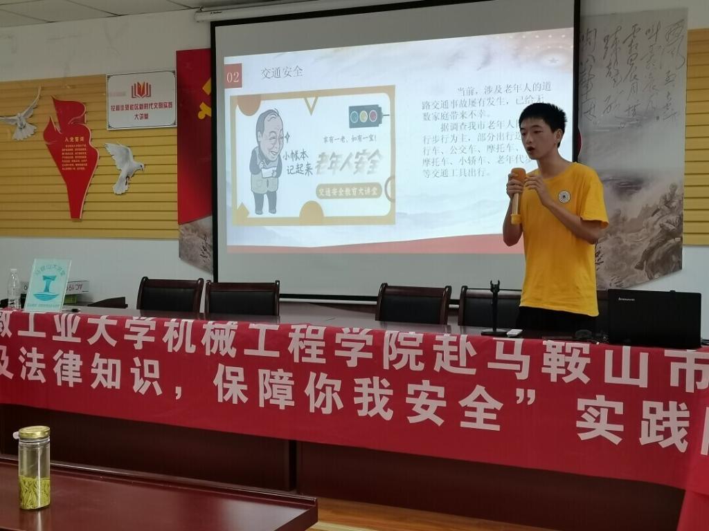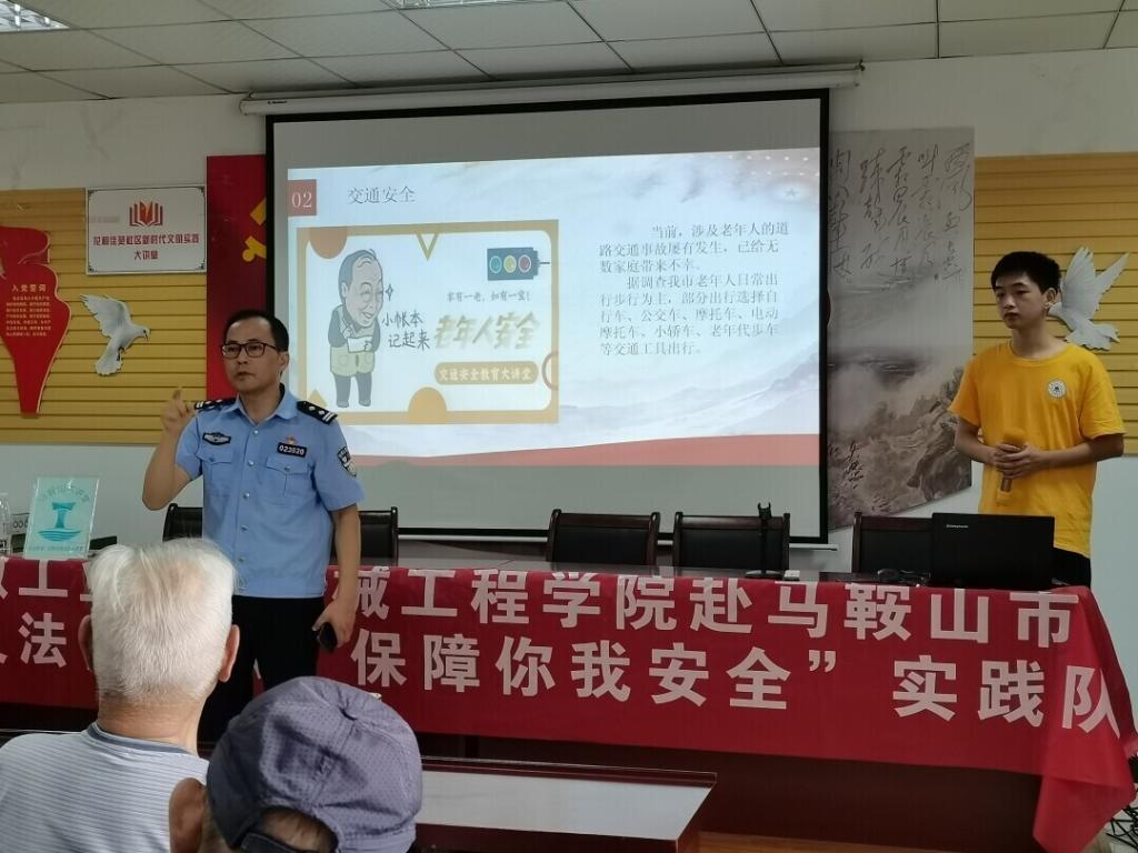 实践队代表通过宣讲、展示ppt、与老人们交流发生在生活中的案例以及播放相关普法视频等方式向老人们展示了交通安全的重要性。在宣讲期间,人民警察也向老人们叙述了一些触目惊心的交通事故,对日常的交通法规加以强调。