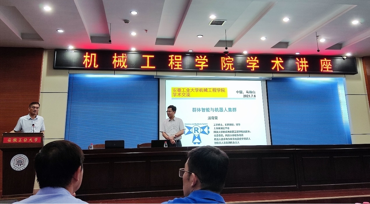 师生做了题为《群体智能与机器人集群》的学术报告,报告由刘庆运院长主持,机械90分钟足球