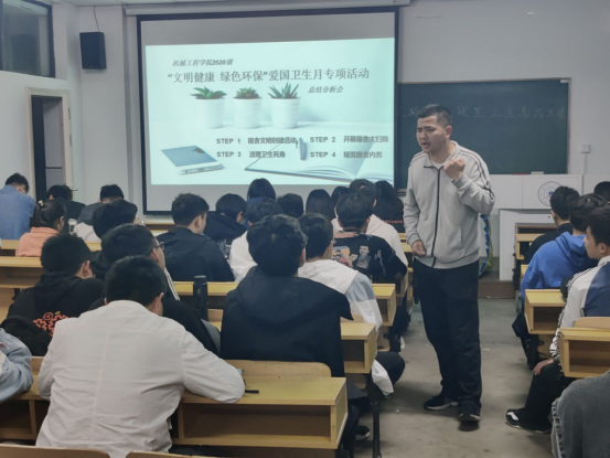 2020级“文明健康 绿色环保” 爱国卫生月专项活动总结分析会,会议由2020级辅导员汪辉主持,2020级各班生活委员及寝室长参加了此次会议。