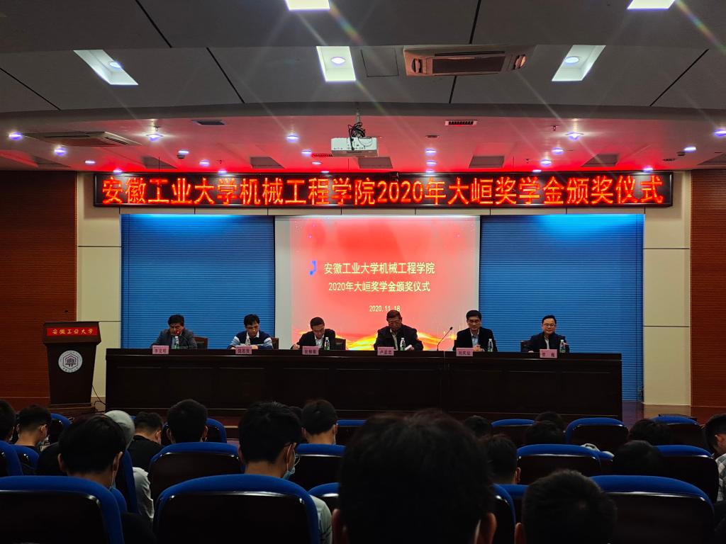 仪式前,大峘集团有限公司通过一段精彩的视频向大家展示了公司的发展情况、荣誉资质、“家”文化的文化理念、党建风采等情况。仪式在全体人员奏唱国歌声中拉开序幕,刘庆运通报了《关于郏凯旋等15名同学荣获2020年大峘奖学金的情况通报》。之后,获奖代表机械设计制造及其自动化专业2017级3班赵胜波同学进行了发言,结合自己的大学经历和取得的成绩,感谢学校的培养和大峘集团的资助。紧接着,参会领导嘉宾为获得2020年大峘奖学金的10位本科生和5位硕士研究生颁发了获奖证书。