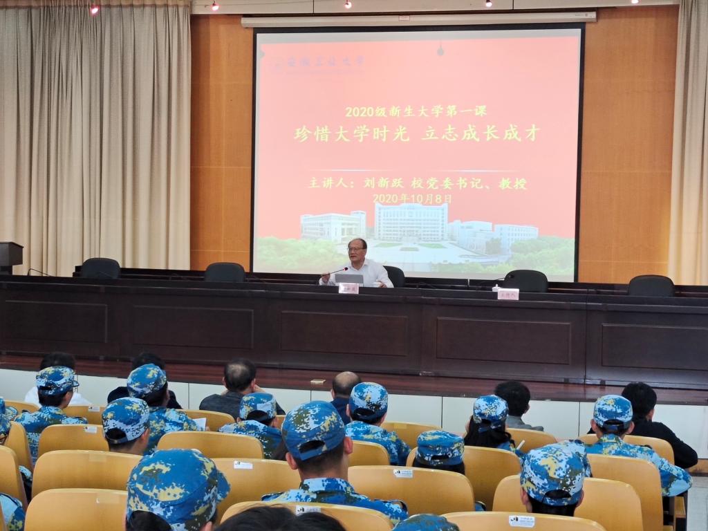 会上,刘新跃告诉新生,1958年9月20日是我们的校庆日,也是毛主席视察马鞍山,很巧,今年新生9月20日报到,前一天,习近平总书记也视察了马鞍山,关心关注当地的发展生产情况。刘新跃表示,同学们应逐字分析“安”“徽”“工”“业”“大”“学”6字。既要安心读书,注意安全,又要有工匠精神,大度、大气,有大志。刘新跃向同学们提出3点希望,一要做一个有志向的人,二要做有正确思维方式的人,三要做一个谋发展的人。