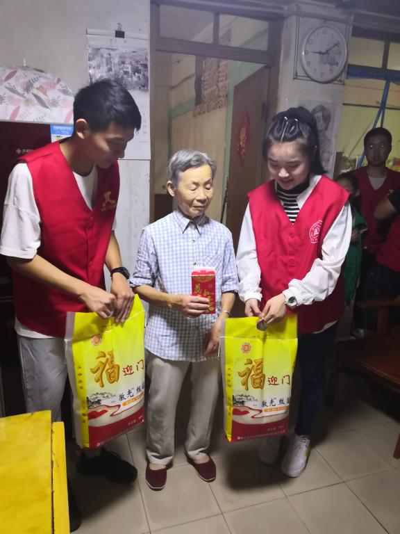 中午,安工大机械学子和市成功学校805班的几位学生代表,在中岗社区网格员的带领下,来到中岗三村3栋302室徐大英老人的家中,给老人送来基本的生活用品和生活补贴,帮助老人整理房间、陪老人聊天。并且承诺在每个节日,都会为他们送去粽子、月饼和元宵等食品,与他们一起度过传统佳节。虽陪伴的时间不长,带来的礼品不贵重,但志愿者的爱心会长存于此。