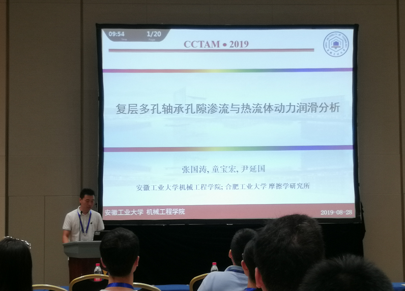 有六位老师参加了本次盛会。其中,张国涛博士和方光武博士分别开展了“复层多孔轴承孔隙渗流与热流体动力润滑分析”和“基于裂纹带方法的陶瓷复合材料多层界面相损伤演化有限元模拟”专题汇报,黄向明老师和汪超老师分别开展了“地球质量的演化”和“Multi-objective shape optimization of plates with cutouts by extended isogeometric analysis”墙报展示活动,取得了很好的学术交流效果。