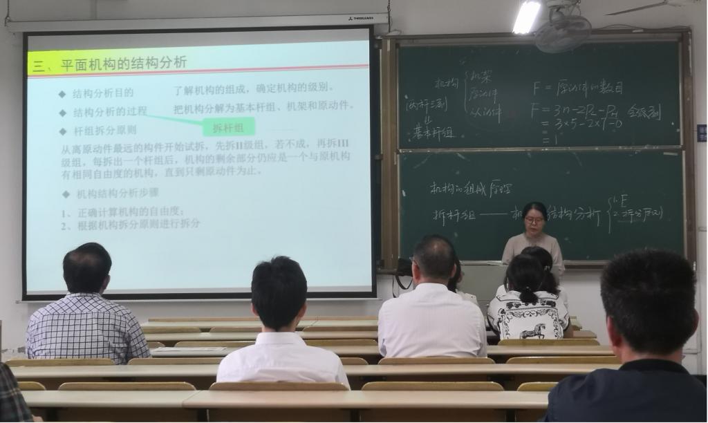 教师准备了一节精彩的课程思政示范课,她讲授的内容是机构的组成原理及结构设计,通过一个教学案例-简单摆动颚式破碎机和复杂摆动颚式破碎机的机构组成比较,前者机构复杂、效率较低,而后者机构简单、效率高,将机械创新设计、科技创新等思政元素自然地融入到机构设计中。