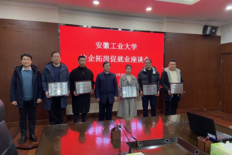 座谈会上,魏先文代表学校向5家企业授予“安徽工业大学大学生就业基地”牌匾。(撰稿:马永亮 审核:李克明 徐柳根 张苒 杜飞)