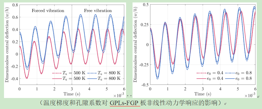 研究表明,孔隙的引入会降低石墨烯功能梯度多孔材料的热传导,而石墨烯则可以有效增强材料的热传导;对于热传导较大的基体材料,孔隙对其热传导和温度分布影响较大,而对于热传导较小的基体材料,更容易受石墨烯所影响;孔隙对石墨烯功能梯度材料热传导的影响,直接影响着结构的非线性响应,且该影响随孔隙系数的增大而增大。上述研究为石墨烯功能梯度多孔结构的设计和制造提供了理论依据。