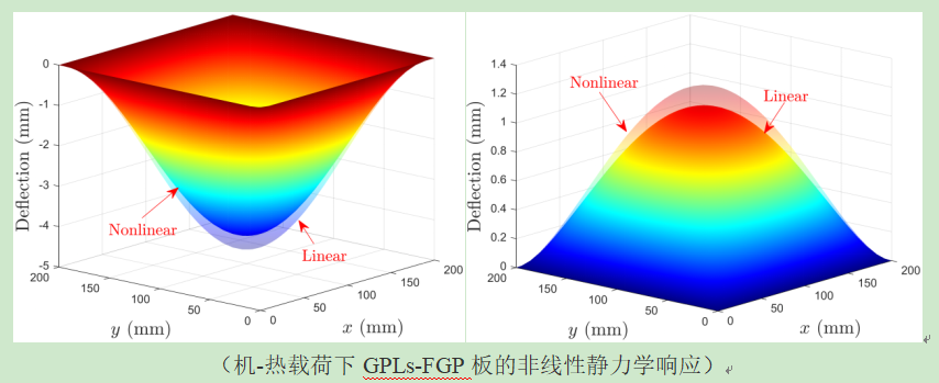 石墨烯增强功能梯度多孔材料具有质量轻、强度高等优点,被广泛应用于机械工程、土木工程、汽车和航空航天工程。在复杂的应用环境中,GPLs-FGP板常受到较大的热-机载荷作用,呈现较强的非线性行为。因此,非线性模型的精度对于准确预测GPLs-FGP板的热-机耦合非线性行为具有重要意义。