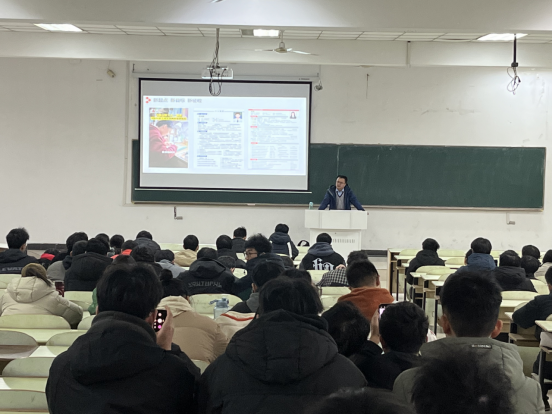杨琦老师在佳山校区教三南203教室为2024级新生做题为“从创意到创业,由模仿到创新——大学生创新创业实践指导”讲座。