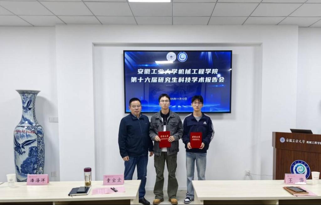 副院长童宝宏、机械设计制造及其自动化系主任王涛、机械工程系主任胡晓磊、车辆工程系副主任潘海洋、基础课党支部书记胡文锋、以及机器人工程专业杨明星担任评委。报告会由研究生辅导员王丹丹主持。