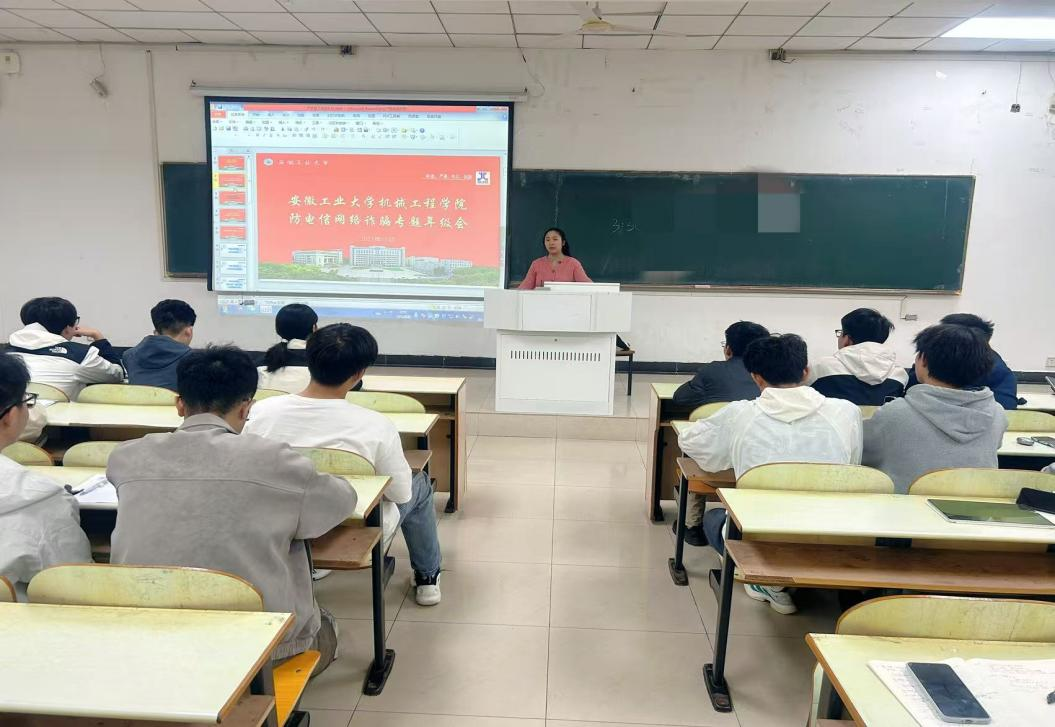在佳山校区教三南103召开防电信网络诈骗主题教育会,会议由大一辅导员董春辉、毕苗主持,2025级全体学生参加。