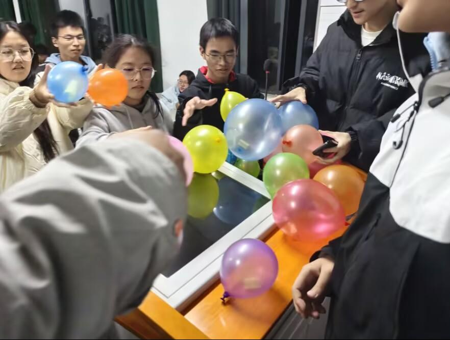 于11月29日晚上在本部教一315教室开展“情绪气球”心理游戏活动。本次活动吸引了同学们积极参与,现场气氛热烈。