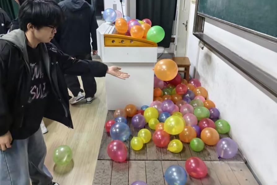 活动过程中,同学们在便签纸上匿名写下自己的情绪故事、内心困惑或近期压力,仔细折叠后塞入气球并充气,将一个个承载情绪的“气球”集中放置在讲台上。随后,大家随机抽取他人准备的气球,在清脆的爆破声中取出纸条,阅读陌生却共鸣的留言。环节之间,同学们自然交流、彼此倾听,在匿名分享中传递理解与支持,实现了心灵上的“隔空对话”。活动全程严格遵守“尊重隐私、禁止调侃”的原则,始终围绕积极倾听与情绪疏导的理念展开。