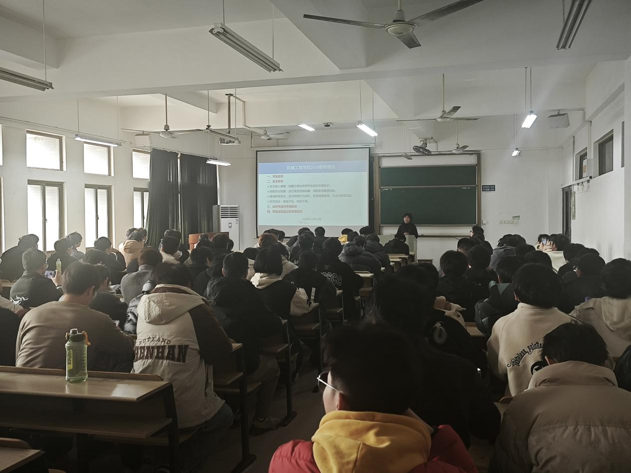 2024级分专业组织全体学生召开期末年级大会。会议由辅导员汪辉、陈洁主持。