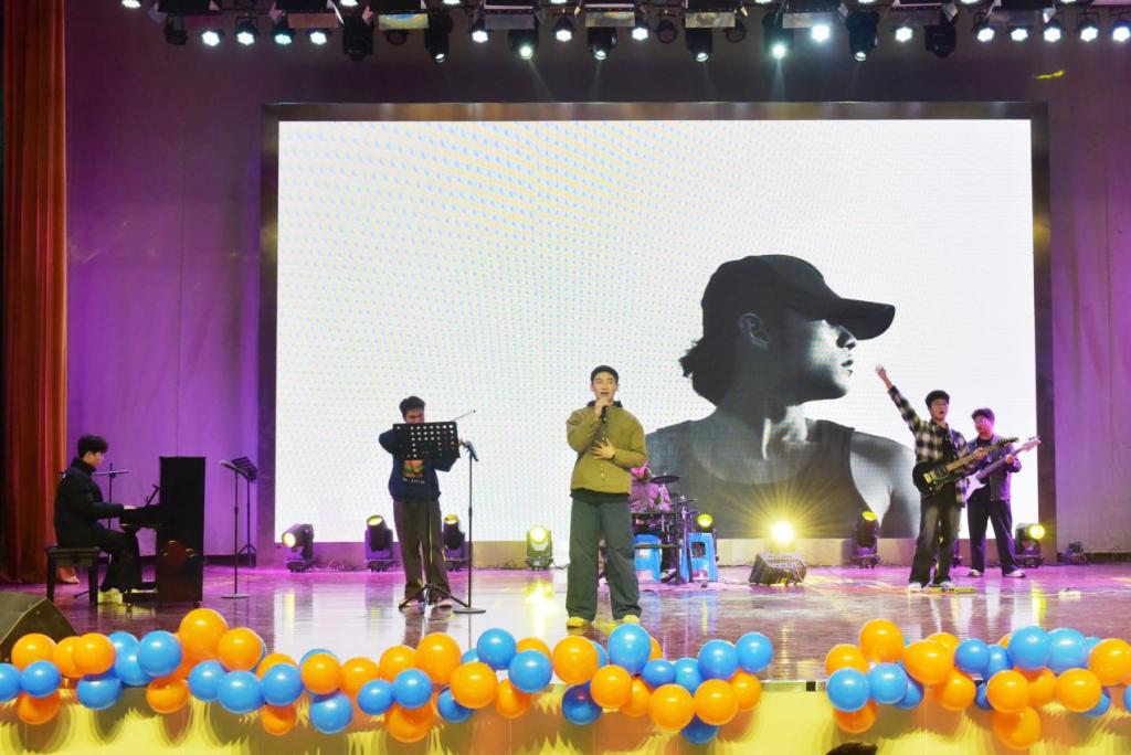 党委书记吴文兵老师登台献唱的《把一切献给党》——沉稳歌声里,是师长对学子的期许,亦是“机械人”的初心传承;