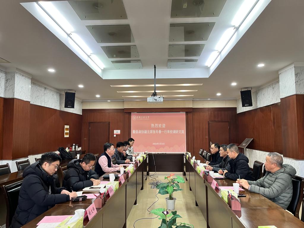 1月6日下午,歙县政协副主席张冬春一行来校调研交流。校党委常委、副校长张世宏出席座谈会。歙县投资促进局、科商工信局、开投集团,以及90足球比分app科研院、90分钟足球