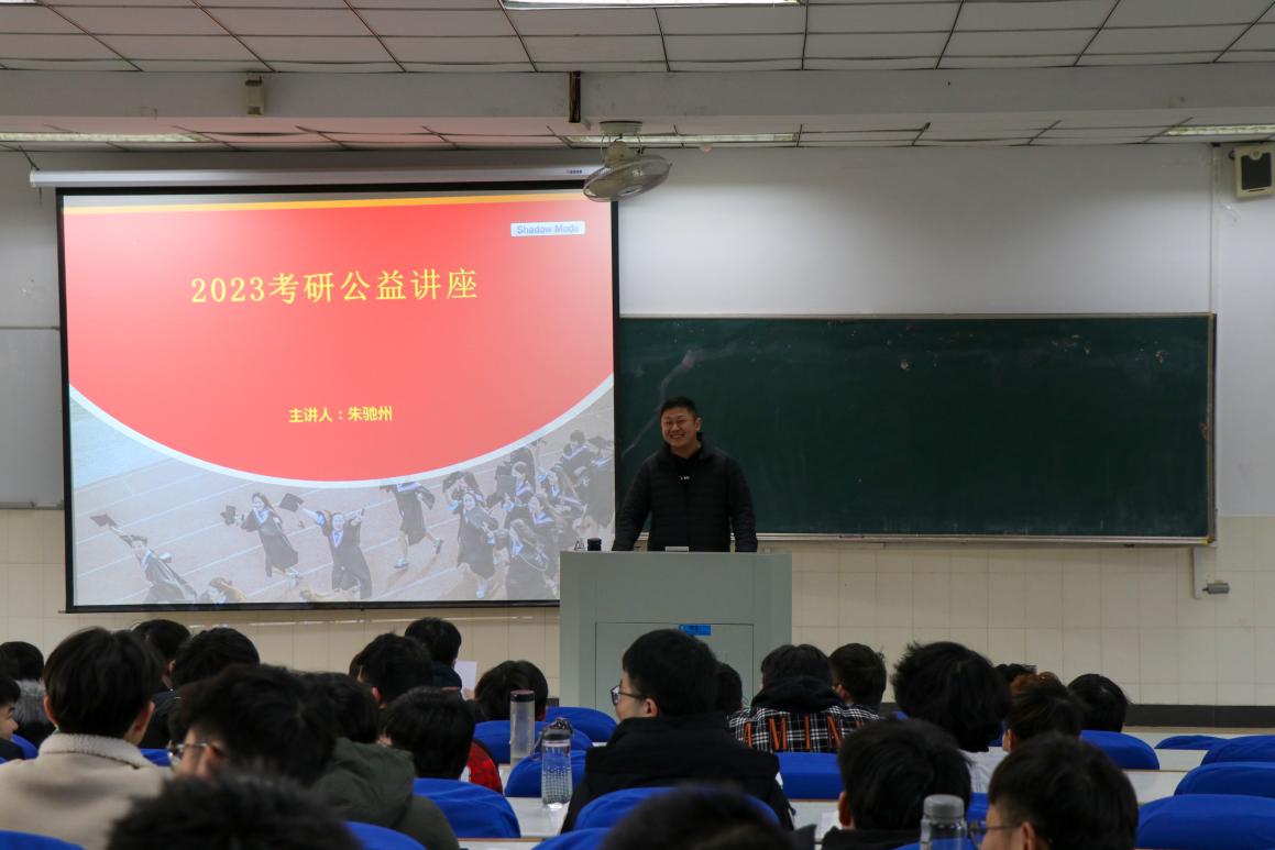 在阶梯教室102举办了“考研公益讲座〞。2019级志愿考研的近300同学参加了此次讲座。讲座由辅导员王琴老师主持.