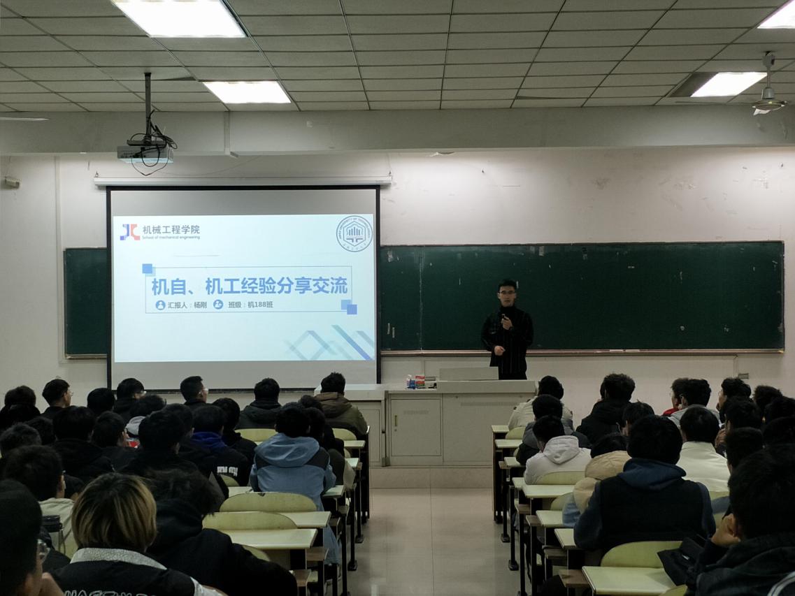 优秀学子杨刚与2021级机自、机工专业新生们分享交流了自己大学期间的学习生活的经验和感悟。