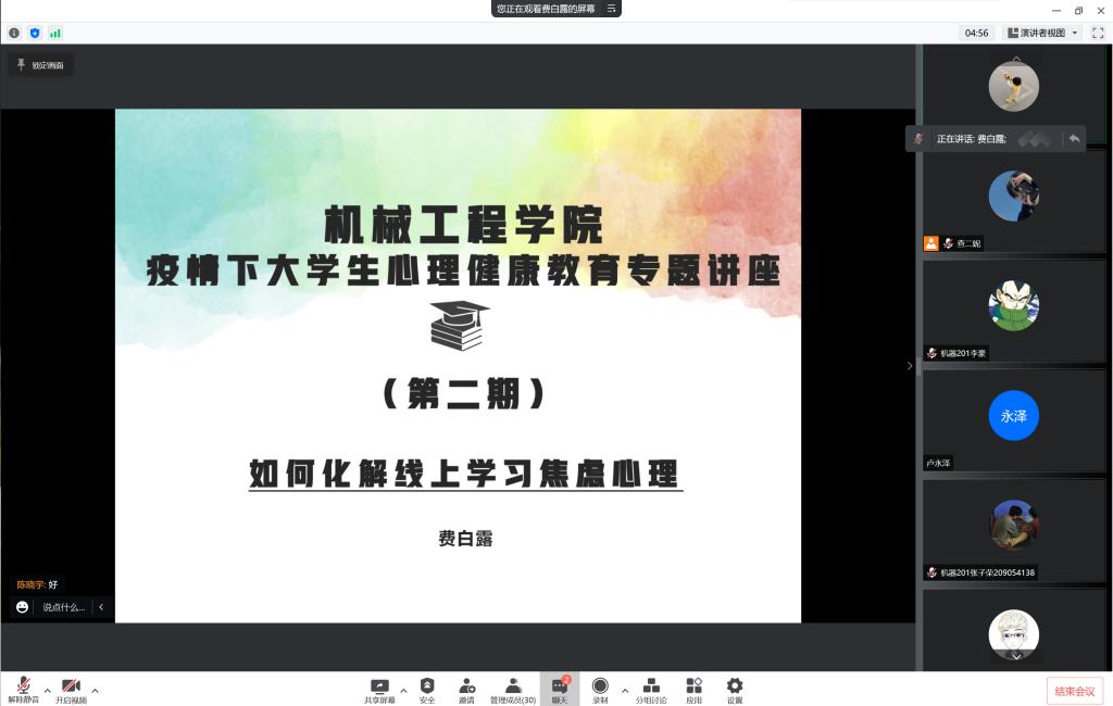 讲座共分为4期,主题分别为“携手防疫从心开始”、“如何化解线上学习焦虑心理”、“毕业焦虑你中招了没”、“如何预防春季心理‘感冒’”,针对不同主题,90分钟足球