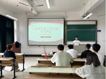 本科生第三党支部10月14日于机械楼407开展学习例会。本次例会由袁星高同志带领学习,依次学习了社交媒体泄密案例、为国防和军队现代化贡献力量、扎实推进教育强国建设以及宣传思想文化工作这四个方面。